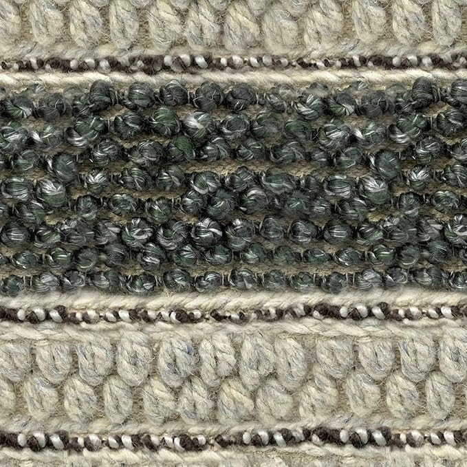 - Handcrafted with Wool and Cotton in a Woven Green and Natural pattern