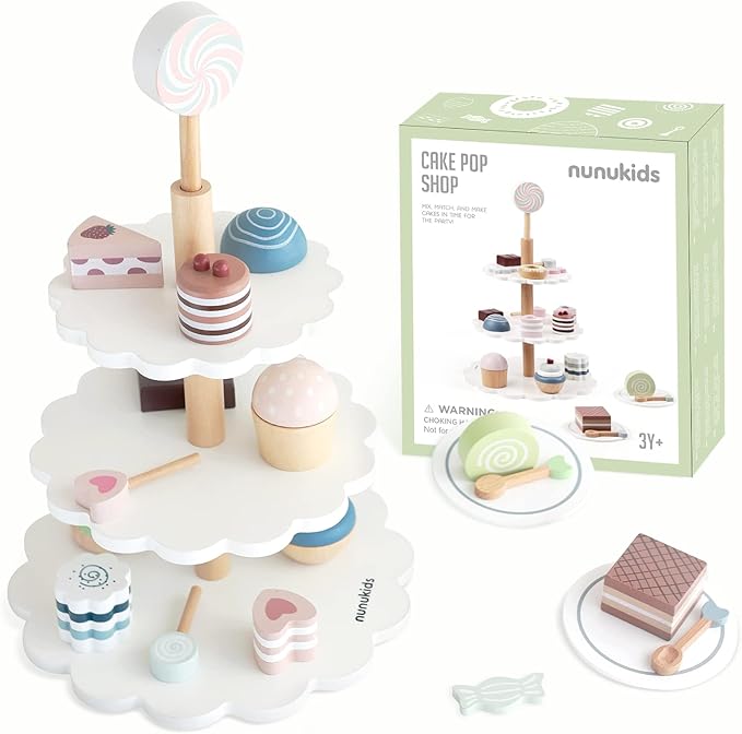 - 3.❤ATTRATIVE DESIGN: Cake pop shop stand with colourful macarons colours make the whole set of toys look more unique. Morandi's gentle colors help children improve their concentration and immerse themselves in play. Parents encourage their children to play with their friends, or play pretend games with their children, which can not only improve their cognitive skills, language and other aspects of the child, but also benefit from happiness.