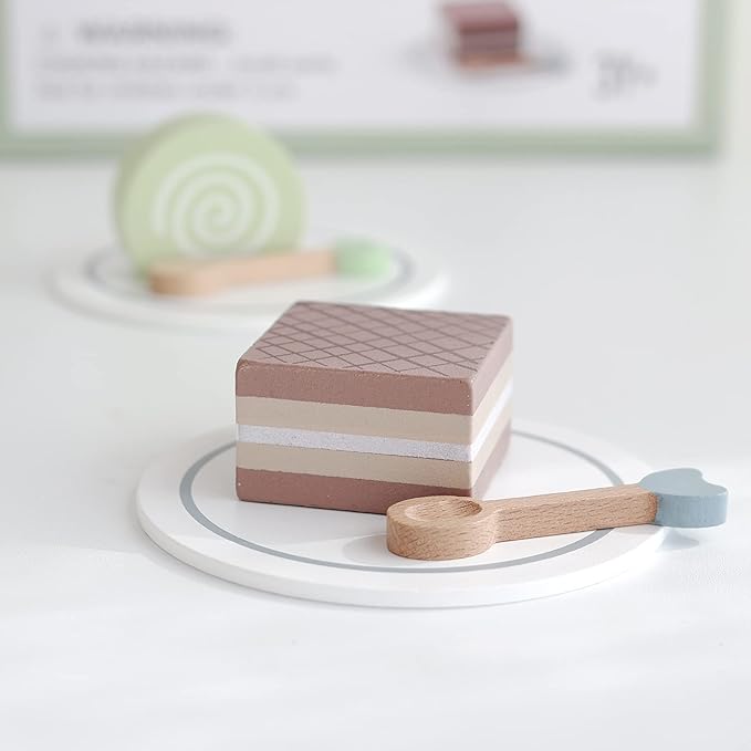 Wooden Tea Party Set for Little Girls Fake Food for Kids Kitchen 22pcs Cake Shop Toy