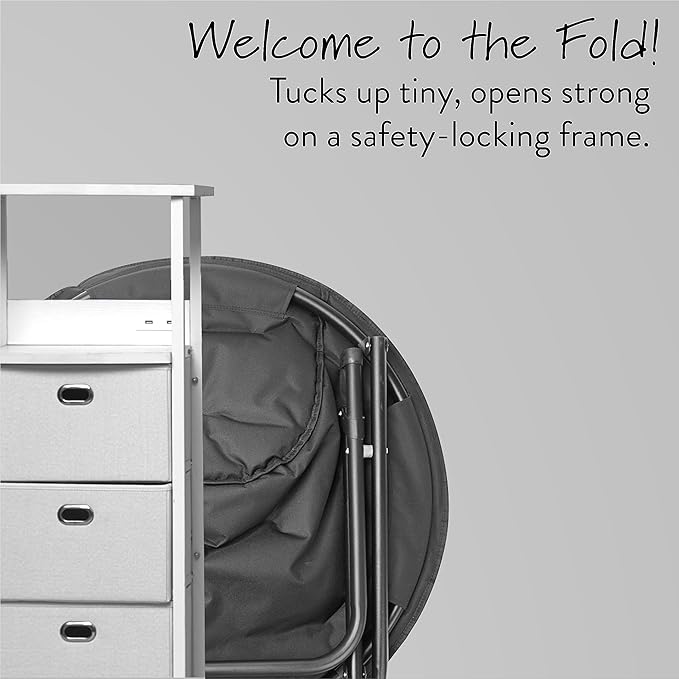 - FOLDABLE: A foldable steel frame supports up to 225 lbs and folds flat when not in use, making it easy to hide this decorative saucer chair out of sight without taking up a significant amount of room in tight spaces. This saucer chair also has a safety locking mechanism on the leg for added support. Carry this saucer chair with you to your next destination, as it is also travel friendly.