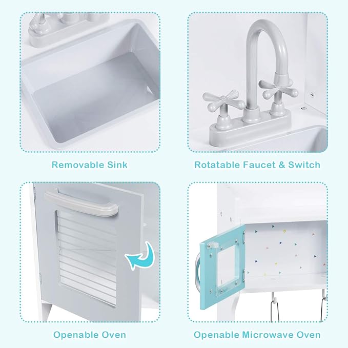 - đ˝ď¸ăEasy to Assemble & Cleană: Coming with all hardware and an easy-to-understand instruction, the pretend play kitchen allows parents and kids to assemble in a short time, enhancing parent-child relationship. Furthermore, the smooth surface can be easily cleaned with just a damp cloth.