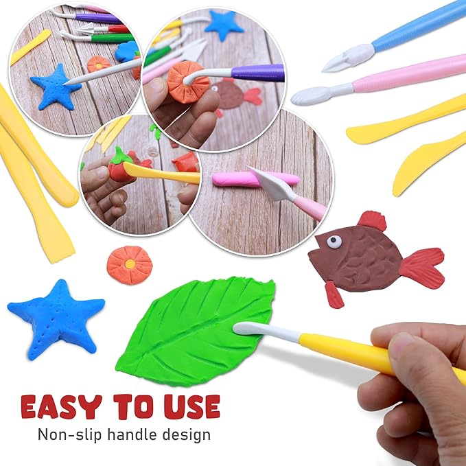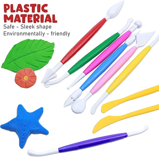 - All The Clay Sculpting Tools You Need: This modeling clay tool provides you with all the necessities for clay sculpting. The package includes 7 double-ended tools, 2 pointed tools, 1 scraper, and 7 different plastic modeling tools. These model magic tools are specifically designed for various tasks such as carving, shaping, modeling, scraping, cutting, brushing, smoothing, and intricate detailing.