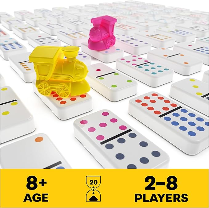 - QUICK-START FUN: Just take this strategy board game out of the box and CHOO-CHOO; you're off on a trip to play Mexican Train Dominoes for kids and adults ages 8 and up.