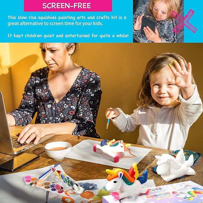 Unicorn Squishy Toys, Paint Your Own Squishies Slow Rising Kit, Large Squishies Pack Stress Relief Toy for Boys and Girls, Arts and Crafts for Kids 4 5 6 8 12, Birthday Easter, 4 Pack