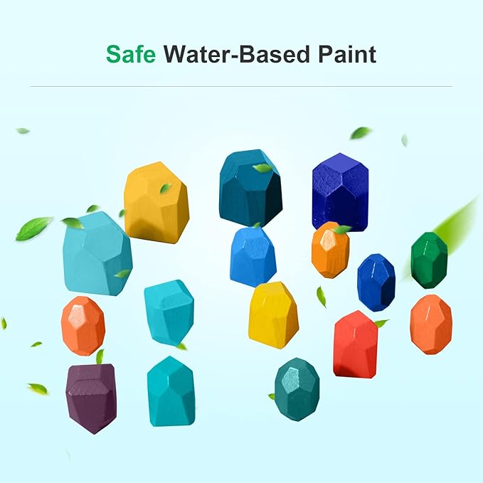 - SAFE MATERIAL:Wooden stacking stones use child-safe water-based paint, which has passed CPC certification. Bright colors not only attract children's interest, but also make kids play better