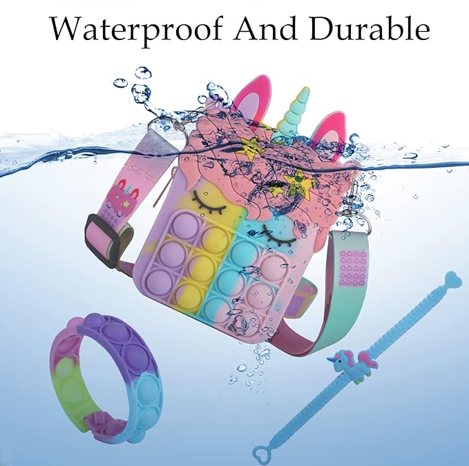 Fidget Purse, Pop Fidget Push It Bubble Popper Unicorn Bag with Bulk Fidget Bracelets Key Chain Stress Relief Toys for Girls Ages 3-12 Gift Easter Basket Stuffers Birthday Party Favor Xmas Stocking