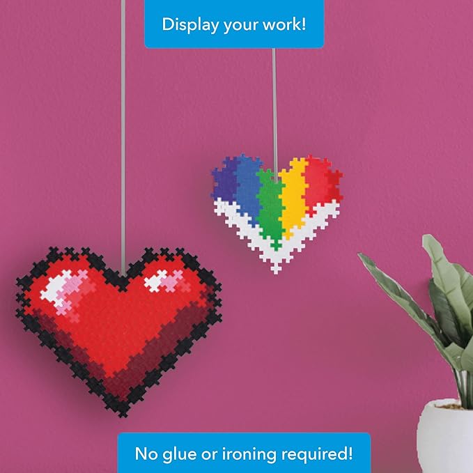 - Building Set Includes: This colorful Hearts set includes 250 pieces and a numbered pattern flyer to build on. When you are done, display it on a table or hang it up as vday decor - no glue or ironing required! Each block piece measures 3/4" x 1/2".