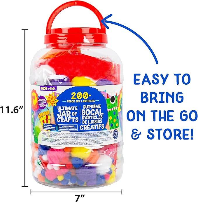 Made By Me! Ultimate Jar of Crafts, 200+ Piece Rainbow Craft Supply Bundle, Craft Supplies Starter Kit, Great Arts & Crafts Kit for Travel and On-The-Go, Perfect for Kids and Adults Ages 6+