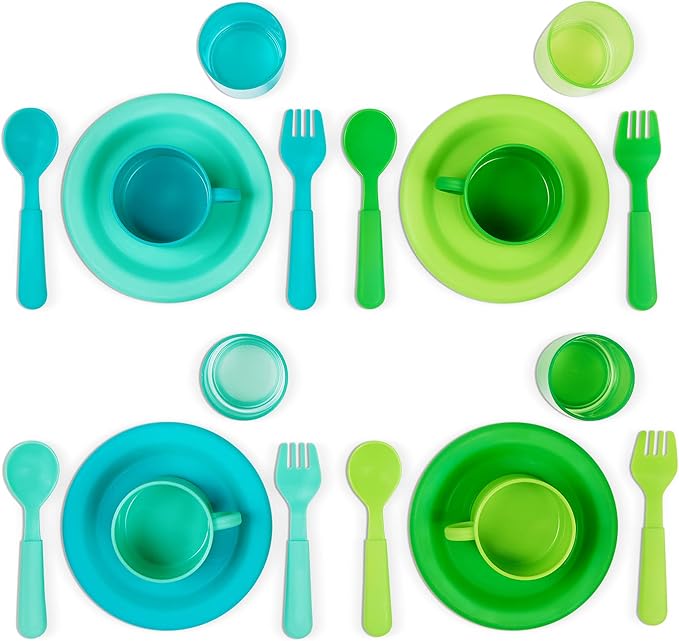 - 26-Piece Set: This kitchen comes with an oven, stovetop, sink, dish rack, a chalkboard, storage, dishtowel hanger, cookware, dishes, cutlery, and utensils.