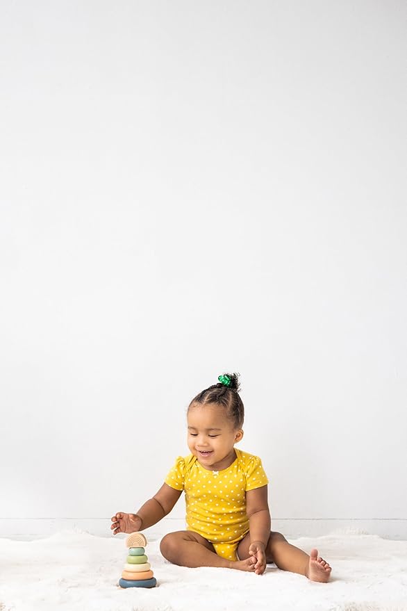 - Your little baby girl or baby boy will love playing, stacking and interacting with this adorable wooden rainbow toy by Pearhead!