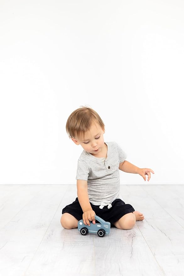- Includes one wooden, muted blue toy car perfect for exploring during playtime; for ages 12 months and up