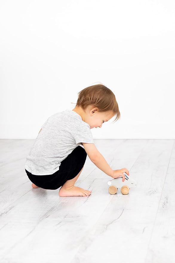 - Your little baby girl or baby boy will love playing, racing and hoping with this adorable wooden bunny push toy by Pearhead!