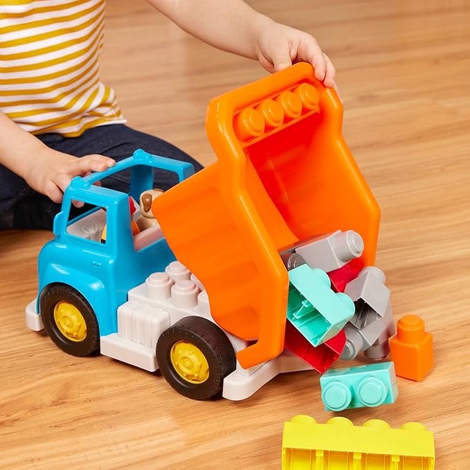 Battat- Locbloc – Toy Dump Truck – 17Pc Construction Set – Working Bucket- Building Blocks & Characters – 12 Months +