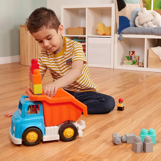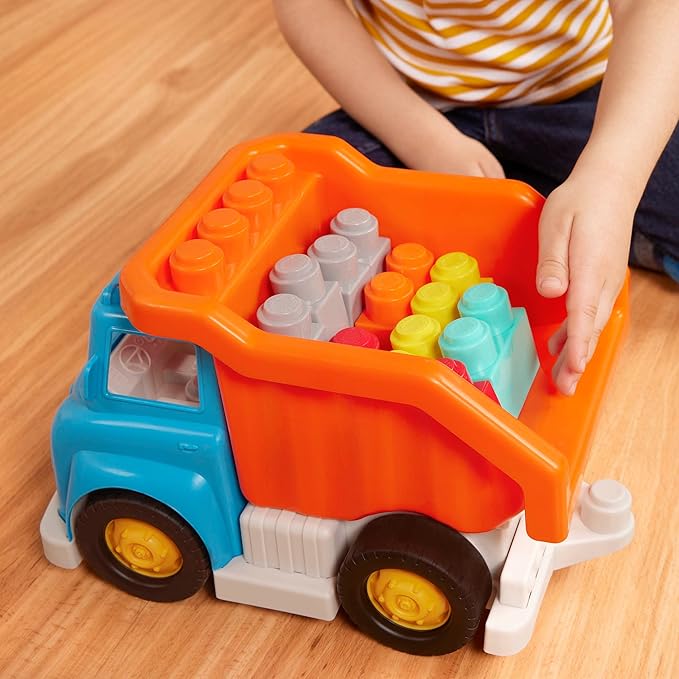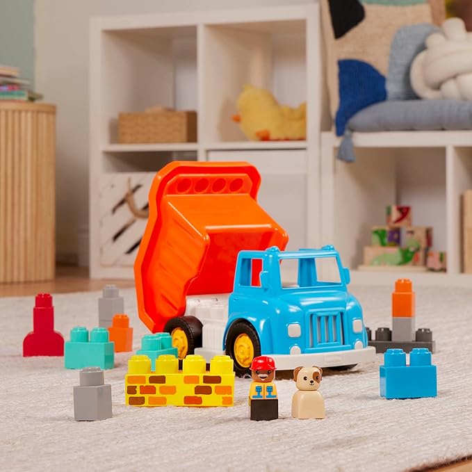 Battat- Locbloc – Toy Dump Truck – 17Pc Construction Set – Working Bucket- Building Blocks & Characters – 12 Months +