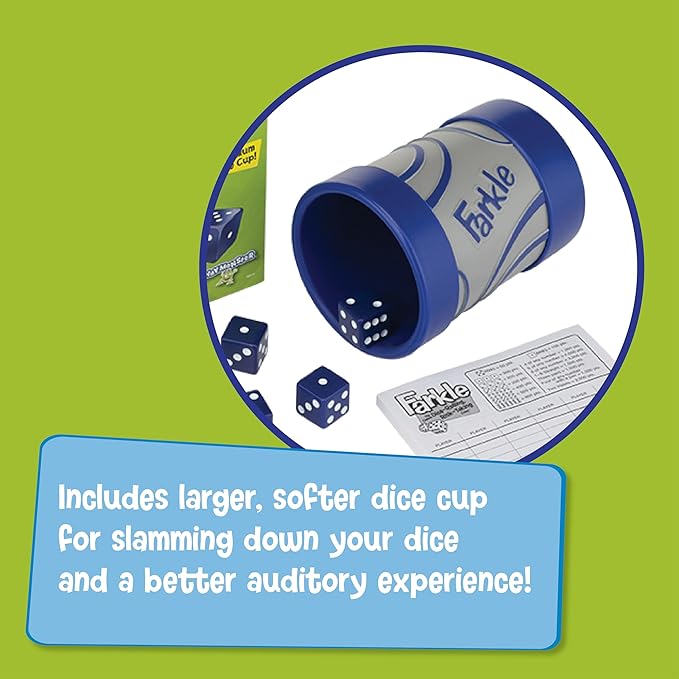 PlayMonster Farkle Classic Dice Game – Premium Kids Games, Dice Games, Family Games, Travel Games, Adult Games, Board Games, Dice Cup, Dice Set, Farkle Score Sheets Included, Ages 8+