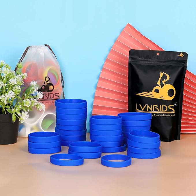 50 PCS Silicone Bracelets Wristbands for kid, Sports Rubber Elastic Wristband Bracelet for Party Decorations Favors Set Pack Blue