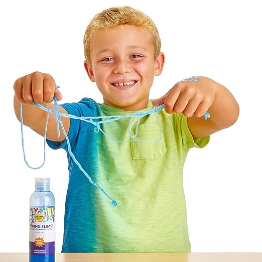 - No glue, no Borax, no messy mixing — just amazing amounts of gooey slime fun for all ages. Just mix up the Activator solution and squirt your favorite String Slime color into the liquid. The instant the two liquids touch, you get solid String Slime to play around with. Rest assured, the bold, vibrant color is both safe and clean.