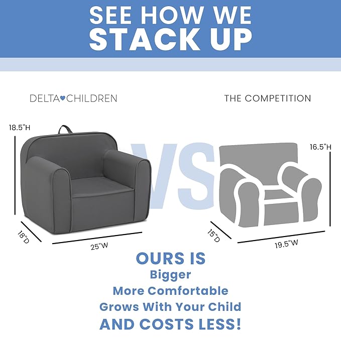 Delta Children Cozee Chair for Kids for Ages 18 Months and Up, Dark Grey