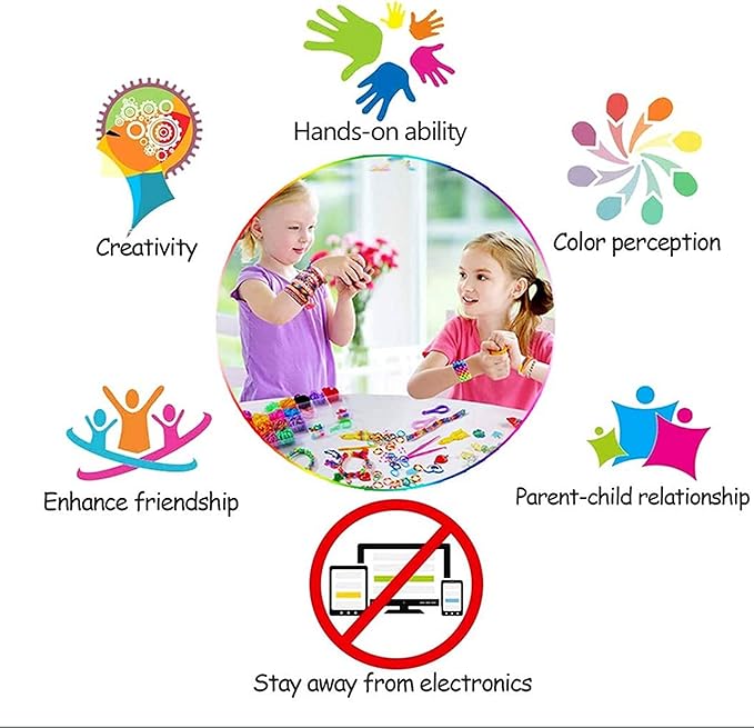 - 【Wide Application】The rubber bands bracelet making kit can help children to improve their creativity and concentration power during DIY, especially a popular parent-child activity to develop a warm and supportive relationship. You can make lots of unique wearable gadgets, such as friendship rubber bands bracelets, necklaces,rings hair accessories, charms ...