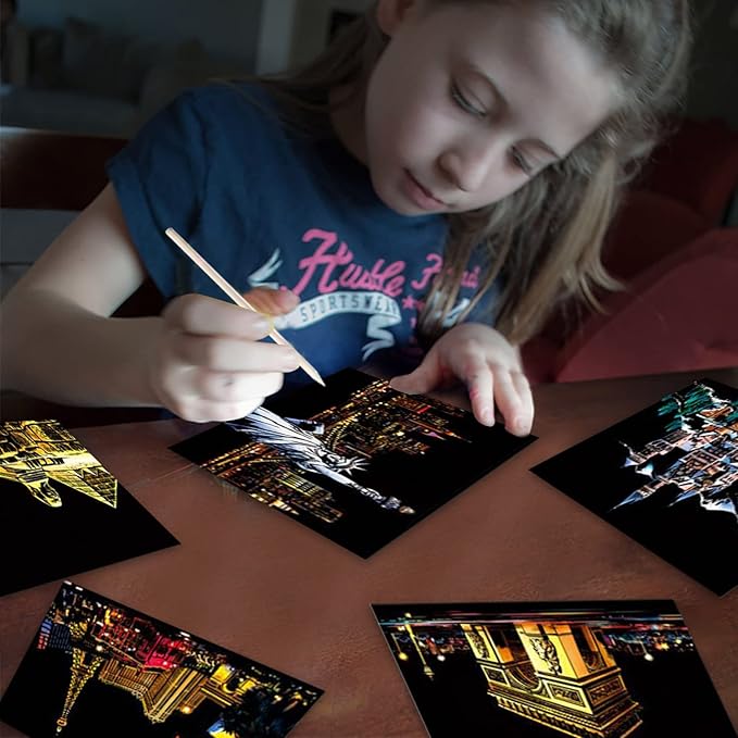 Georgie Porgy Scratch Paper Art Set DIY Arts and Crafts Kits for Kids Adults Magic Rainbow Scratch Postcards for Christmas Birthday Gift with Scratching Tools Kit (Classical Ancient Modern City)