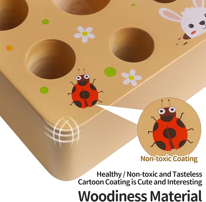 - Cute and Realistic Design: Take the wooden carrots out of the holes, try to reinsert them into the correct slots, or plant them, harvest, etc. Lovely farm landscape with cute rabbits and bugs on it to make them look more real. Use these carrots in the imaginative game of the garden/farmer market, or in the pretend kitchen.