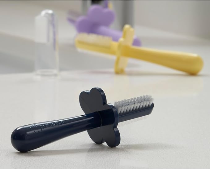 - INDEPENDENT TOOTHBRUSHING: Introducing our revolutionary baby toothbrush! Designed for independent brushing in 1-2-year-old toddlers, this toothbrush promotes positive oral hygiene. With a dual-sided design, it's perfect for 12-month-old babies and up. The pack includes a double-sided toothbrush for little hands and a gentle silicone finger brush for gum massage. Make dental care easy and fun with our toddler toothbrush, the ideal choice for a child's first toothbrush.
