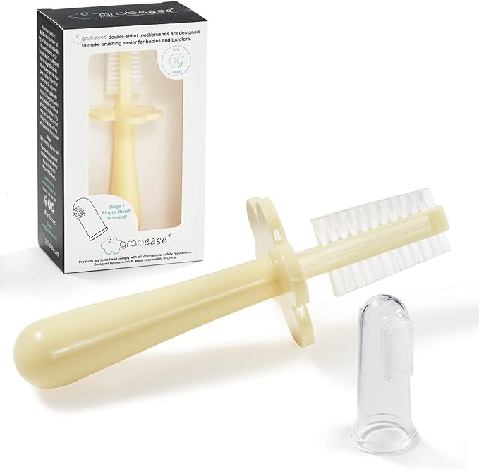 Grabease Baby Toothbrush Double Sided - Training Finger Toothbrush for Toddler Infant, BPA-Free & Phthalate-Free for Baby & Toddler, 1 Pack, Yelow
