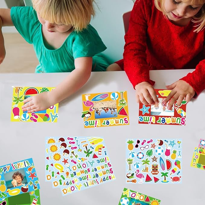 - 【Premium Material & Suitable Size】Each summer picture frame measures about 16 x 12cm/6.3 x 4.7inch with a 8 x 6cm/3 x 2.4inch picture shown space. Each sticker piece measures about 2cm-6cm/0.8-2.4inch.These well-printed kids happy summer DIY art crafts kit are made of durable card and stickers.