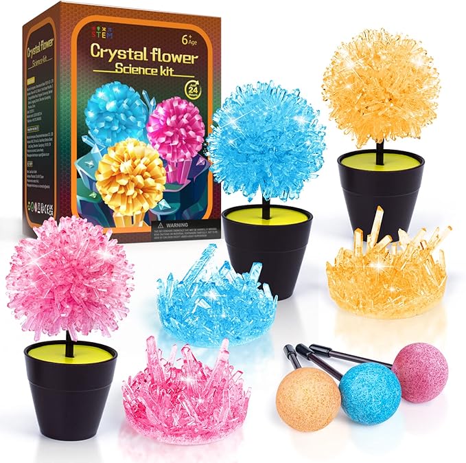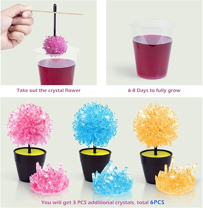 - 【Fast Grow】The crystal science kit can grow into a flower within 24 hours. Children can develop an interest in science experiments by growing their own crystal growing kits. Girls boys toys age 6-8.