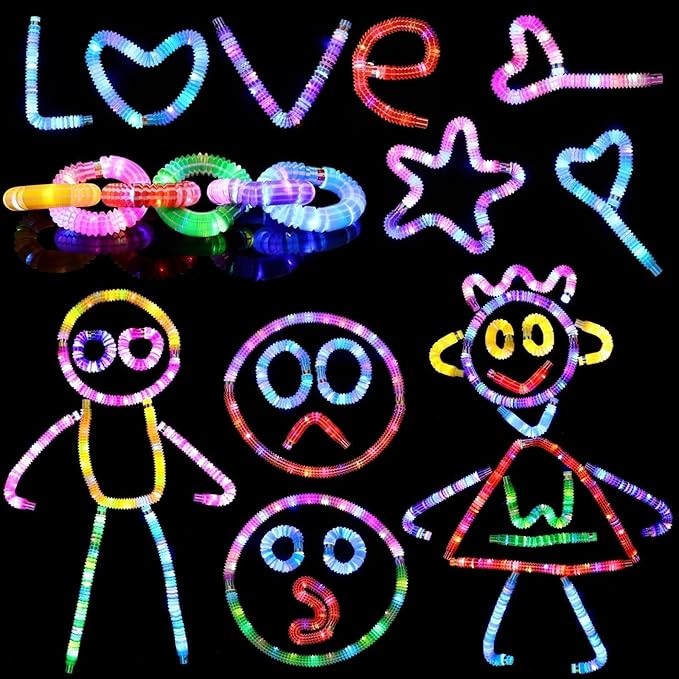 - Safety And Well Made: Our light up toys are made of non-toxic materials,safe for kids to connect,extend in different shapes they want,keeping the kids busy,providing lots of giggles for both kids and adults