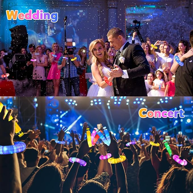 - Bulk Glow Sticks: The box include 24 pcs glow sticks, which is about 8.3" long and stretch to 25". Spice up your glow parties with these glow in the dark party decorations
