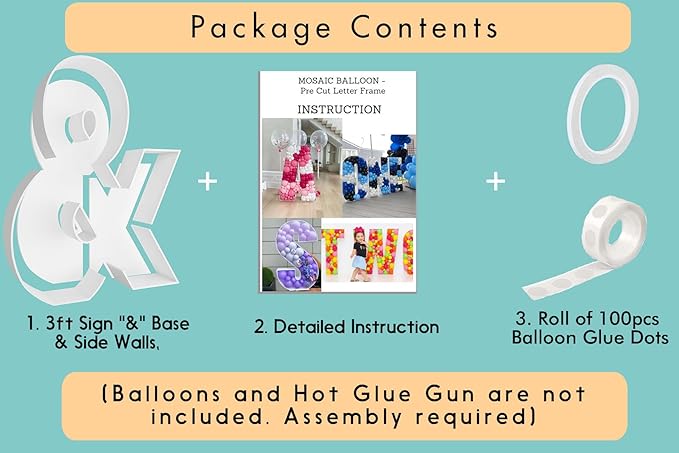 - FAST and EASY ASSEMBLY - Decorate your party like an event balloon artist! Our 3ft mosaic balloon letters are pre-cut to the perfect measurements, saving you the hassle of printing, measuring, and cutting templates yourself!