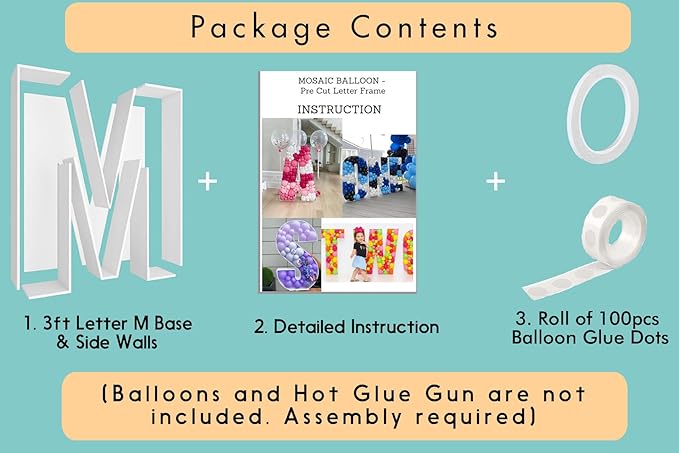 - FAST and EASY ASSEMBLY - Decorate your party like an event balloon artist! Our 3ft mosaic balloon letters are pre-cut to the perfect measurements, saving you the hassle of printing, measuring, and cutting templates yourself!