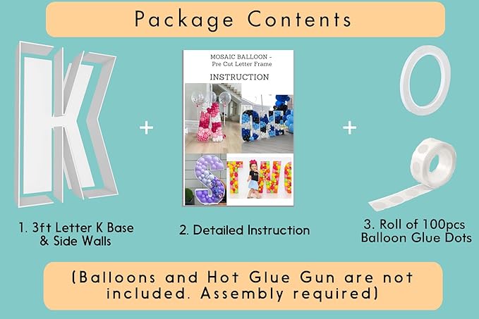 - FAST and EASY ASSEMBLY - Decorate your party like an event balloon artist! Our 3ft mosaic balloon letters are pre-cut to the perfect measurements, saving you the hassle of printing, measuring, and cutting templates yourself!