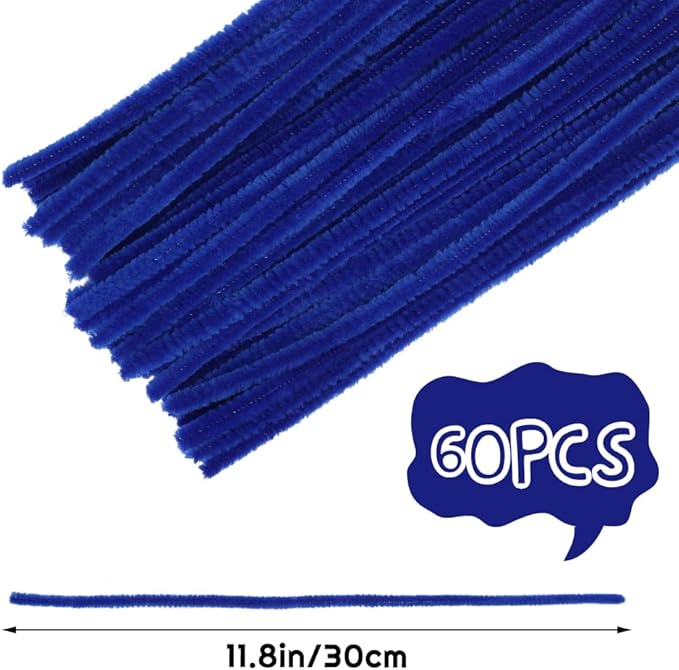 60 Blue Pipe Cleaners, Chenille Stem Craft Supplies for Creative Home Decoration Projects