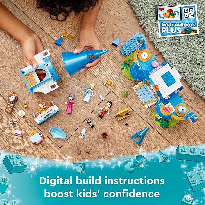 LEGO Disney Princess Cinderella and Prince Charming's Castle 43206 Doll House, Buildable Toy with 3 Mini Dolls, Plus Gus Gus and Lucifer Figures