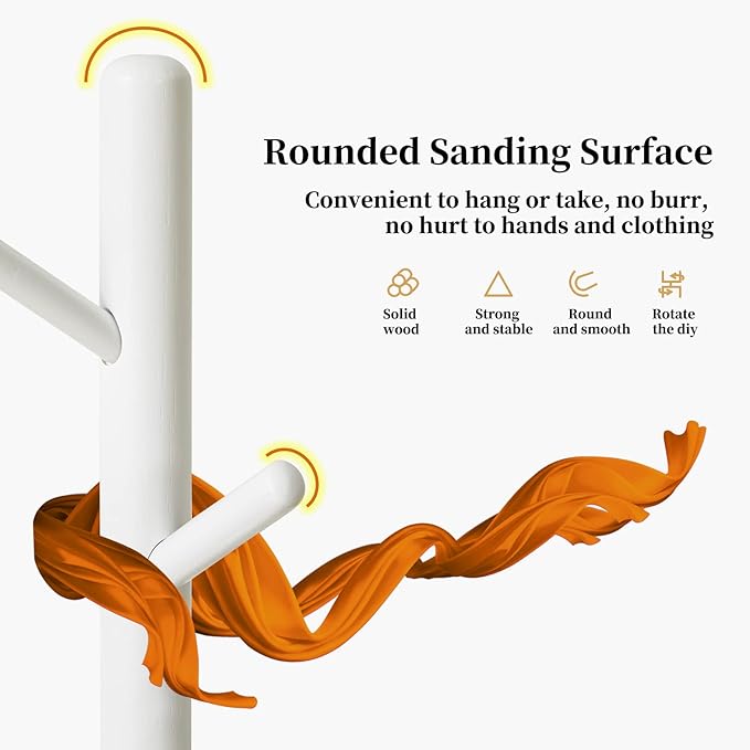 - Healthy Freestanding Coat Rack - Made of natural solid rubber wood. Safe paint, non-toxic. There are white parts label stickers on the wooden parts, and the labels can be blown with a hot air blower before removing, which makes it easier to remove the labels.