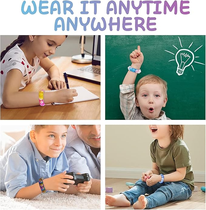 - 【Adjustable Size】The latest adjustable design of pop bracelet fidget toy packs, you can adjust the size of the bracelet according to your actual needs. Fits the size of most kids adults. The most popular stress-relieving toy this year, they will love this adjustable pop fidget toys very much.