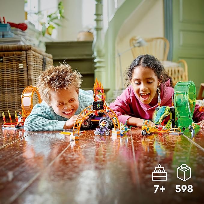 LEGO City Stuntz Double Loop Stunt Arena 60339, Monster Truck Playset with 2 Toy Motorcycles, Ramp, Wall of Flames, Ring of Fire, Snapping Snake Loop and 7 Minifigures, for Kids Ages 7 Plus
