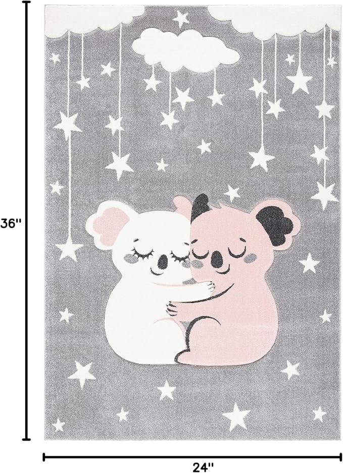 SAFAVIEH Carousel Kids Collection Accent Rug - 2' x 3', Grey & Ivory, Koala Design, Non-Shedding & Easy Care, Ideal for High Traffic Areas for Boys & Girls in Playroom, Nursery, Bedroom (CRK195F)