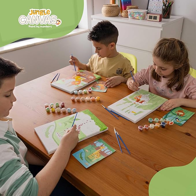 - 🦁 JUNGLE ANIMALS ARTS AND CRAFTS FOR KIDS 🦁 Canvas painting kit for kids is a perfect girl and boy crafts that promotes creativity. Each set contains a training sheet, which is a replica of the painting that will give kids the chance to experiment first. In addition, it contains a model sheet that will act as a guide for the kids to review and check while painting the canvas kids crafts