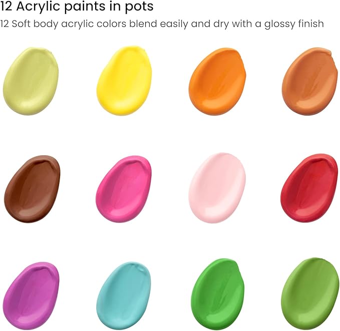 Arteza Kids Nature Painting Kit, 4 Canvases 3 x 3 Inches, 4 Easels, 12 Acrylic Paints, 2 Paint Brushes, 1 Palette, Kids Activities for Ages 6 and Up