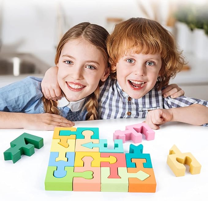 - FUN BRAIN TEASERS GAME: It is challenging and educational to fit all the wooden blocks into a square. The intelligent geometric jigsaw game keeps kids calm and focused for a good while especially for autistic children. The puzzle blocks can help to increase the intelligence of the kids and to help prevent a decline in memory of the elderly by keeping their minds in solving the problems.