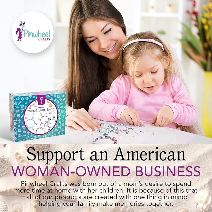 Pinwheel Crafts Mermaid Charm Bracelet Making Kit with Storage Case - DIY Kids Jewelry Making Kit for Girls 8-12 - Birthday Gift & Craft Supplies with Beads and Ocean Charms