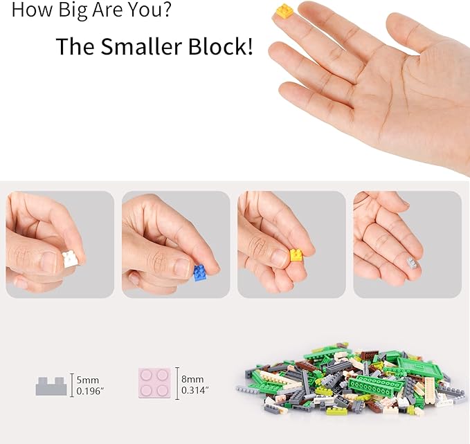 - Note: This is mini building block, and the brick will be much smaller than the normal building blocks. It is recommended for 14+ years children. If you find some missing pieces in this item, please contact us and we will resend the missing pieces to you.