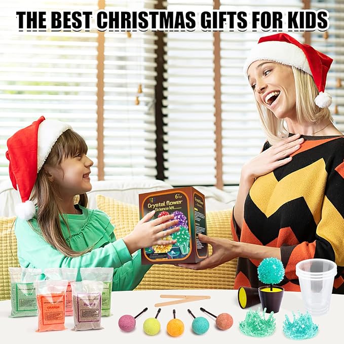 - The gifts for girls and boys 6+ years old contains all the materials needed to perform 5 crystal grow experiments. Using hot water and dissolving the crystal powder.