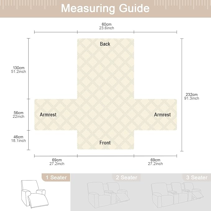 - 【DIMENSIONS GUIDE】Small pet recliner cover fit a chair with a seat width of 23.6 in, see measurement guide in photos. NOTE: Please confirm the size before purchasing. (Due to some lighting reasons, the color of each display will be different, so please refer to the actual color)