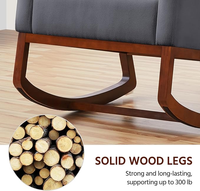 - Side Pocket & anti-tipping stopper: The rocking chair with side pocket keeps your recently read books or magazines close at hand, creating a perfect reading nook for you. The installed plastic stoppers at the ends of chair legs prevent you from tipping backward.