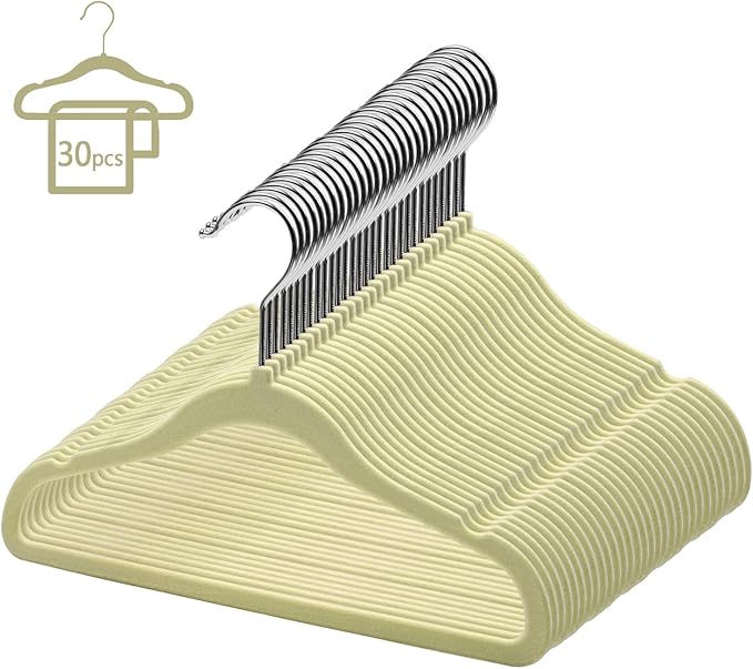 GoodtoU Kids Velvet Hangers,30 Pack Baby Hangers for Closet Non Slip Velvet Clothes Hangers Coat Hangers for Toddler Children Infant Hanger (Beige 30Pack)
