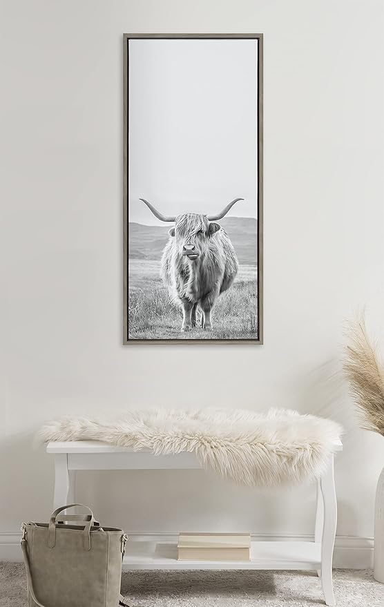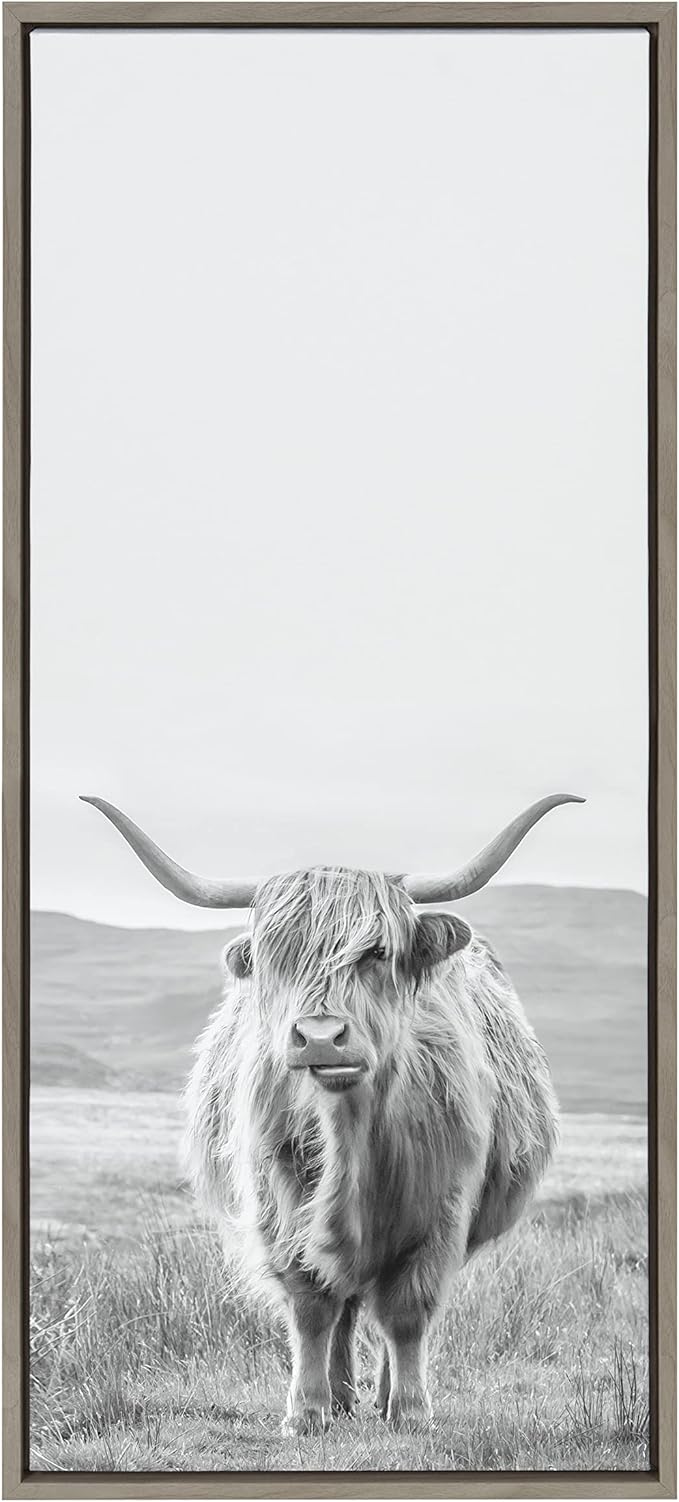 • Artist Designed: Print "Highland Cow Mountain Landscape Vertical BW" 2022 The Creative Bunch Studio